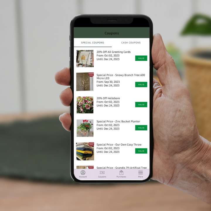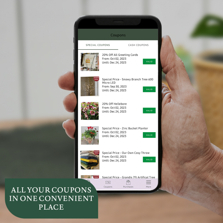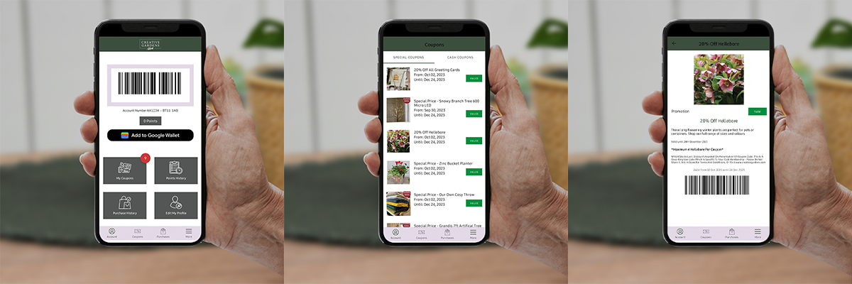 We are delighted to introduce the new Creative Gardens App! Available for iPhone and Android, our new FREE app allows you to access your Customer Club Card and Coupons all in one place... not to mention exclusive offers for App Customers.