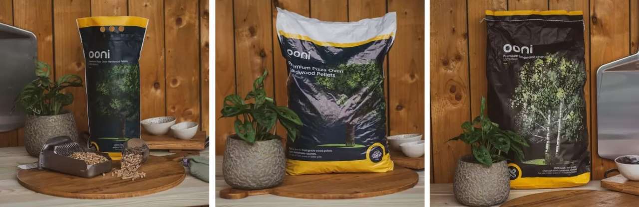 Ooni pellets are just as easy to use. Ensure your oven’s chimney is uncapped and the vent is open. Simply scoop up a generous amount of pellets in your oven’s fuel tray and add a fire lighter. Make a flame before shoving the fuel tray back in and wait a few minutes for the pellets to catch fire. Keep track of the inside temperature using an Ooni thermometer, so you know when your Ooni pizza oven is all set.