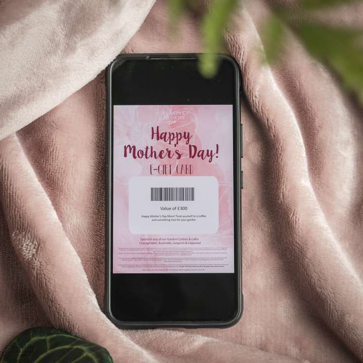 Let your mum decide with one of our Creative Gardens Gift Cards. You can order a physical gift card before Tuesday, 05ht March and we will send it to you in the post or order one of our Mother's Day eGift Cards and have it delivered to your email immediately.