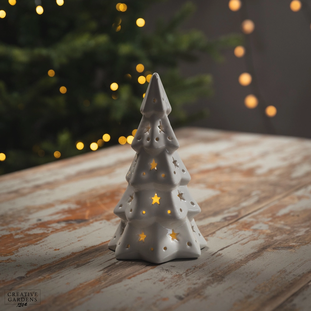 22cm Ceramic Christmas Tree with Warm White LED Lights