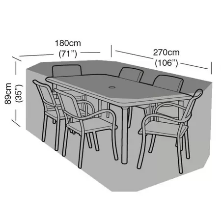 High Quality, super Tough furniture cover with full UV and weather protection with waterproof welded seams. All round draw string with chord locks allows you to secure the cover to your furniture. This cover comes with a massive 7 year guarantee.