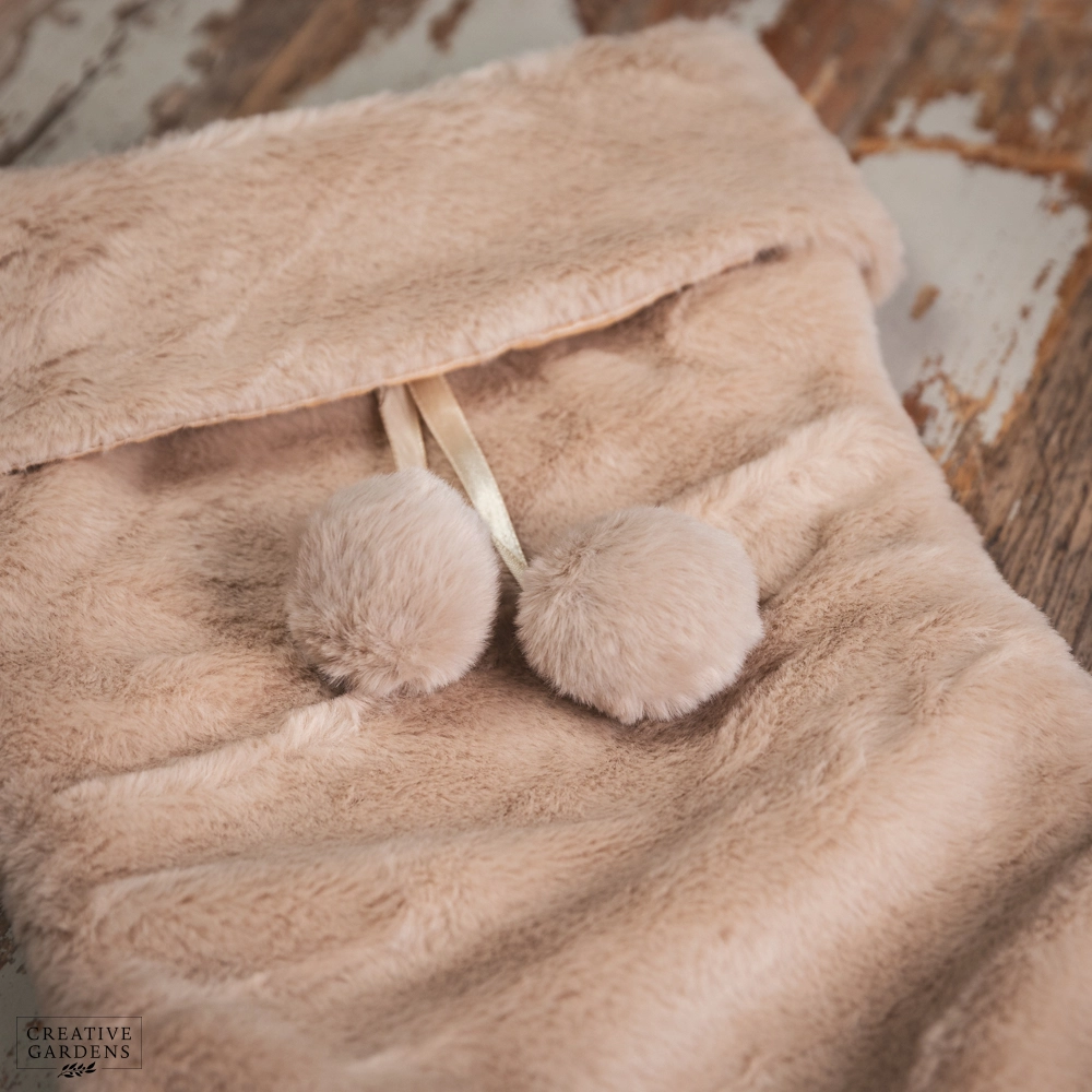60cm Light Brown Faux Fur Stocking with Pom Poms