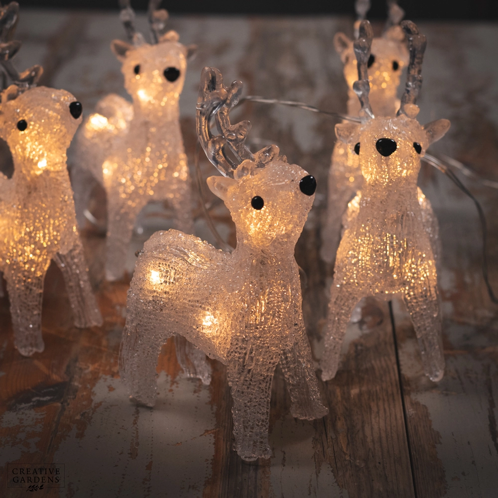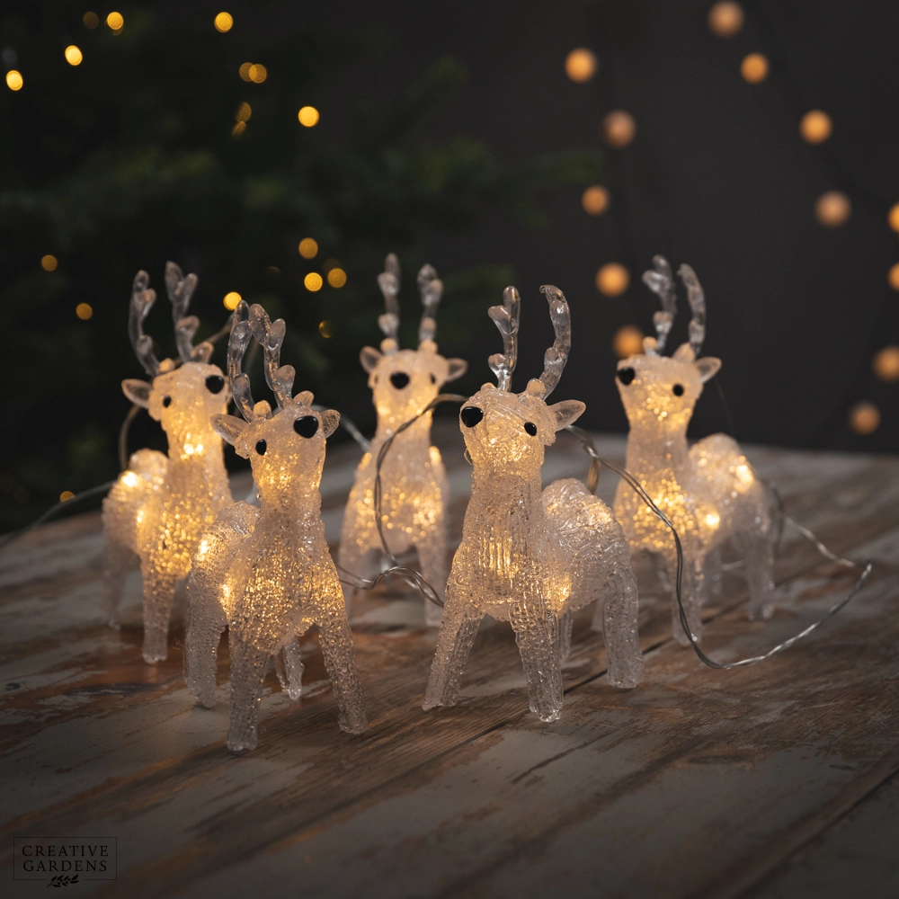 5 Acrylic Reindeer String Lights with Warm White LED Lights.
