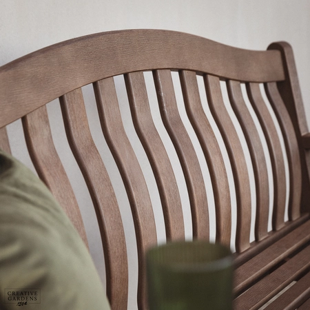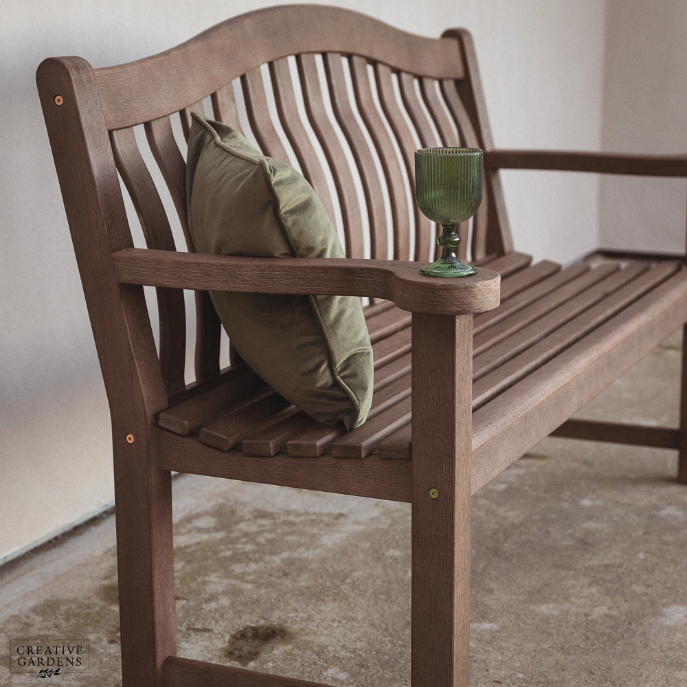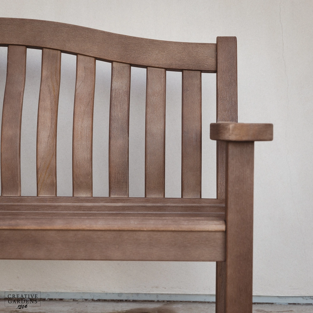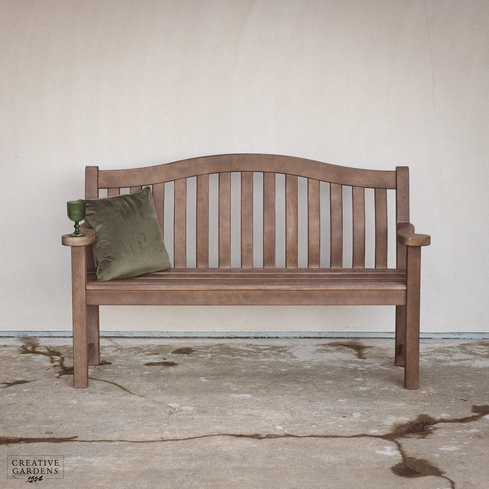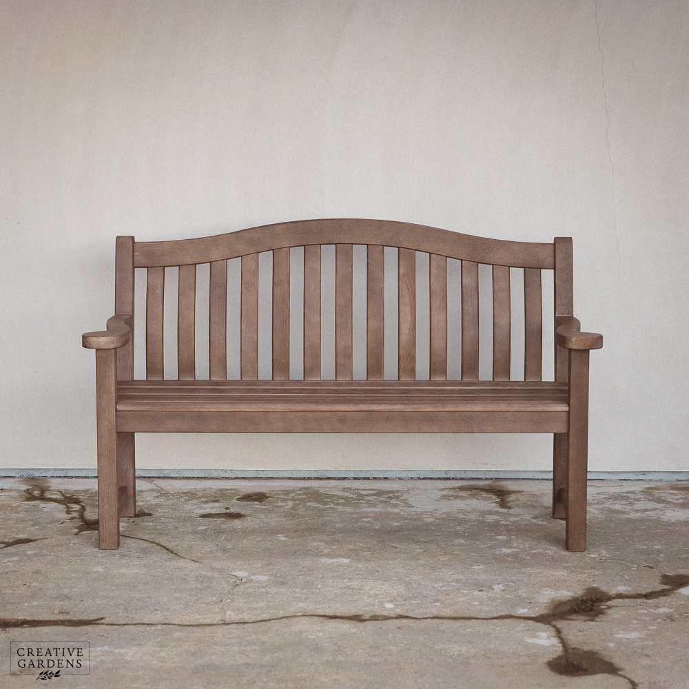 This beautiful and classic 5ft wooden bench from our Turnberry range could be just what you’ve been looking for. The wood itself is a warm, chestnut brown colour with a smooth yet rustic finish. Like all products within our Turnberry range, this bench has a classic and familiar design, with a slightly modern twist. The slatted back, the rounded arms, the curved arch at the back – they all tick that quintessentially English brief.