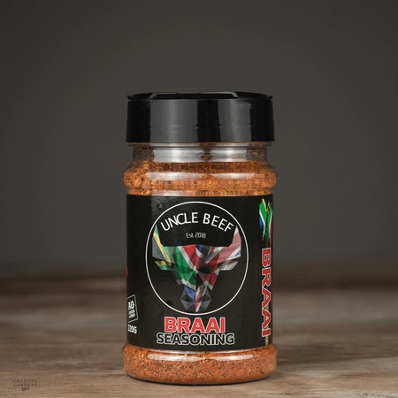 We took direction from Uncle Beef owner Steve who was born and raised in South Africa. We worked to bring this flavoursome Braai Seasoning for BBQ. Which is perfect for enhancing the flavours of steak and chops!