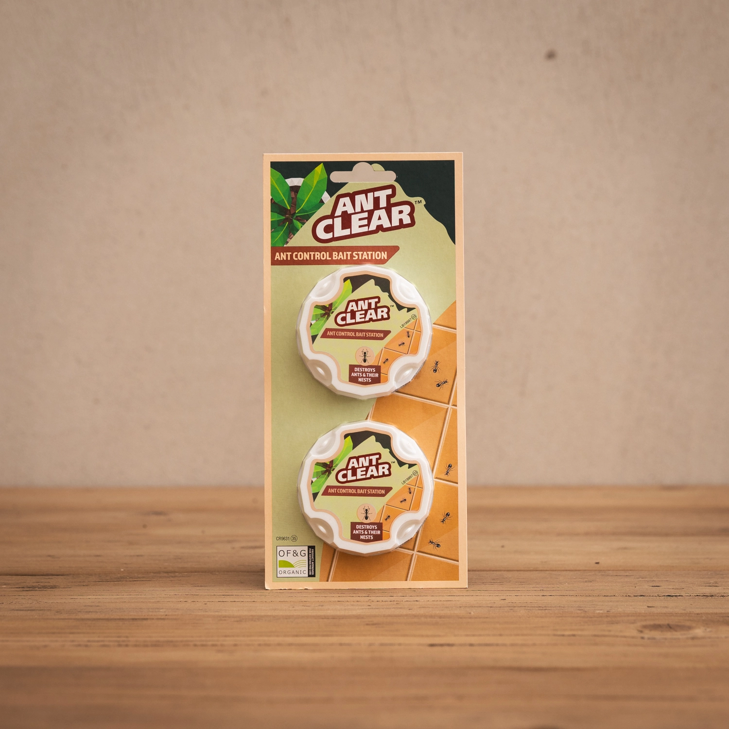 AntClear™ Ant Control Bait Station destroys ants and their nests by being lured into the bait station thinking the gel is food. Derived from Spinosad and Chrysanthemum flower extract, the OF&G certified product is safe to use around the house – indoor and out – as long as it is weather protected. The blister card is made of 100% recycled paper and is fully recyclable. The bait station is currently not recyclable.