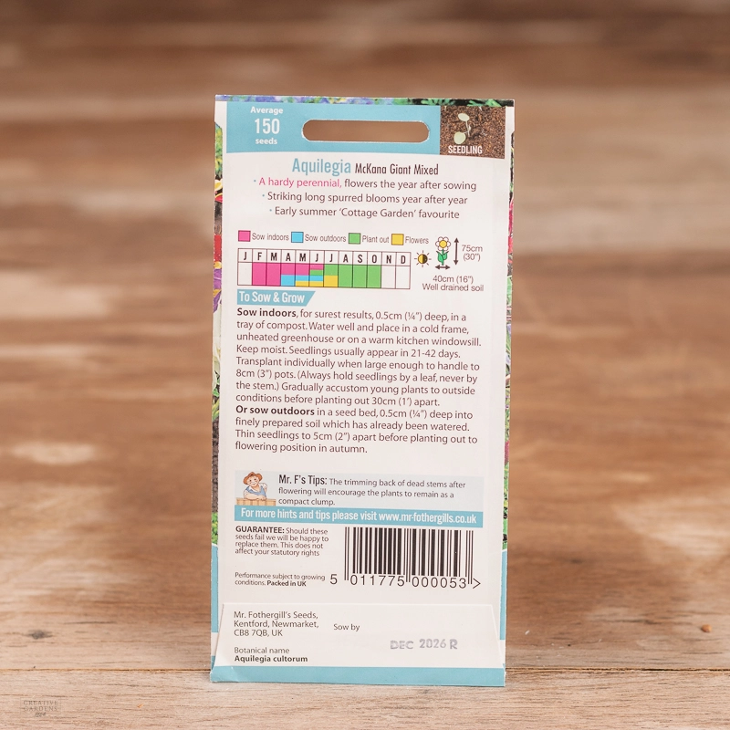 Are you looking for the product "Aquilegia Mckana Giant Mix"? We offer Fothergills Seeds products in our garden centers in Donaghadee, Bushmills, Galgorm and Logwood. You can also order the product "Aquilegia Mckana Giant Mix" online for £ 2.49 or check the products in Seeds & Bulbs. We look forward to seeing you soon!
