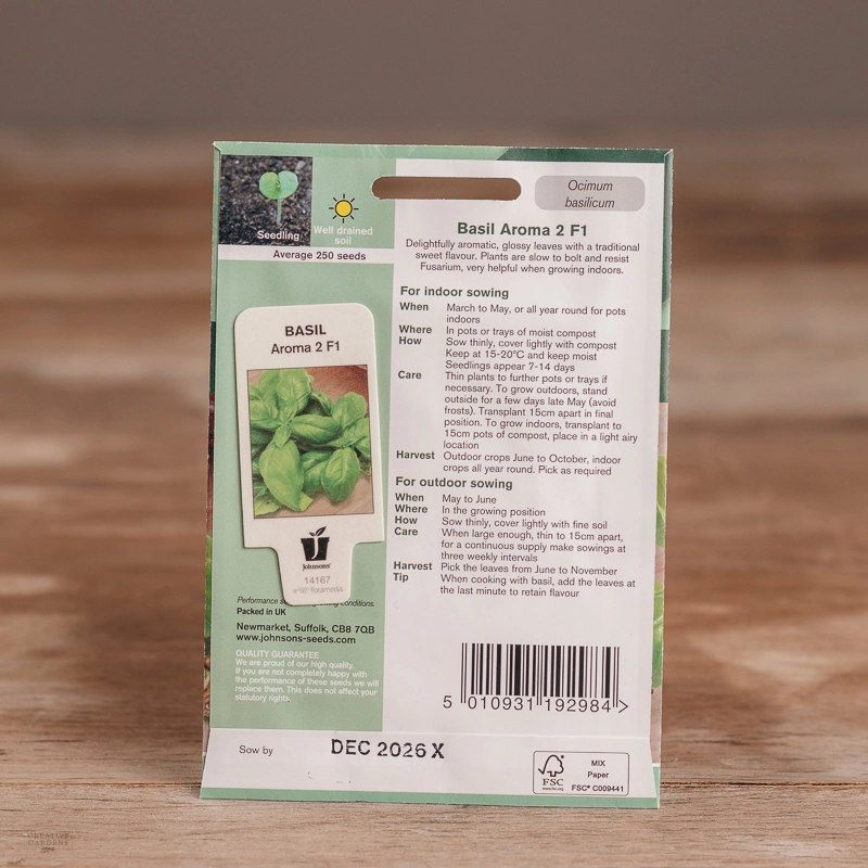Are you looking for the product "Basil Aroma 2 F1"? We offer Johnsons Seeds products in our garden centers in Donaghadee, Bushmills, Galgorm and Logwood. You can also order the product "Basil Aroma 2 F1" online for £ 2.99 or check the products in Seeds & Bulbs. We look forward to seeing you soon!
