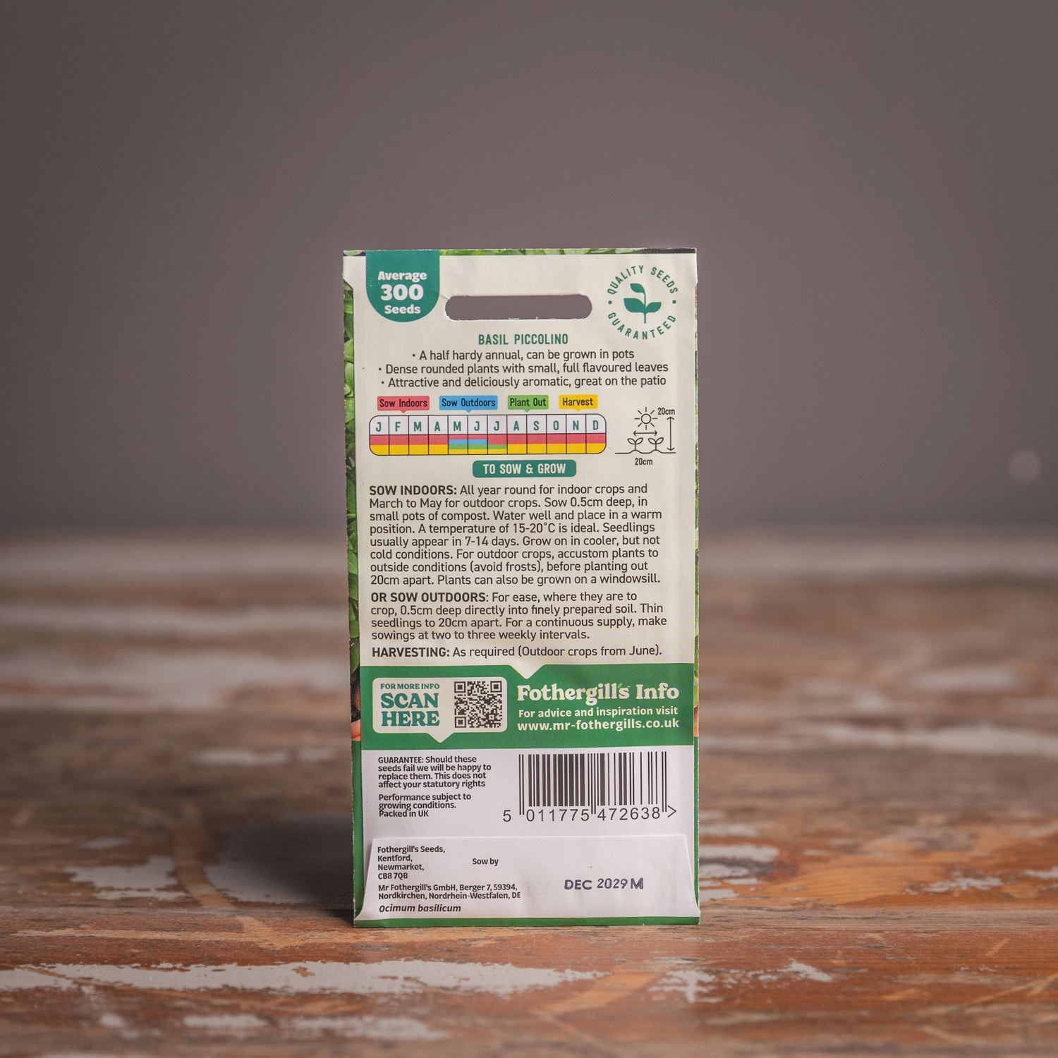 Are you looking for the product "Basil Piccolino"? We offer Fothergills Seeds products in our garden centers in Donaghadee, Bushmills, Galgorm and Logwood. You can also order the product "Basil Piccolino" online for £ 2.99 or check the products in Seeds & Bulbs. We look forward to seeing you soon!