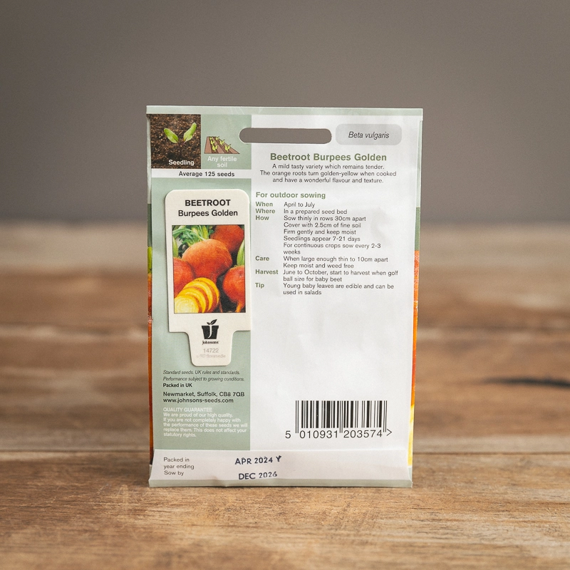 Are you looking for the product "Beetroot Burpees Golden"? We offer Johnsons Seeds products in our garden centers in Donaghadee, Bushmills, Galgorm and Logwood. You can also order the product "Beetroot Burpees Golden" online for £ 3.49 or check the products in Seeds & Bulbs. We look forward to seeing you soon!
