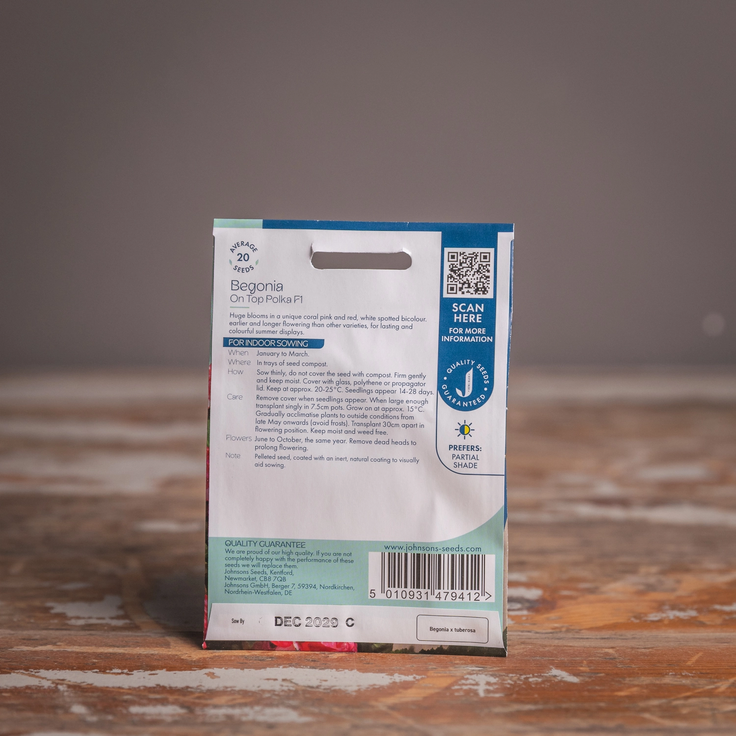 Are you looking for the product "Begonia On Top Polka Dot F1"? We offer Johnsons Seeds products in our garden centers in Donaghadee, Bushmills, Galgorm and Logwood. You can also order the product "Begonia On Top Polka Dot F1" online for £ 4.49 or check the products in Seeds & Bulbs. We look forward to seeing you soon!