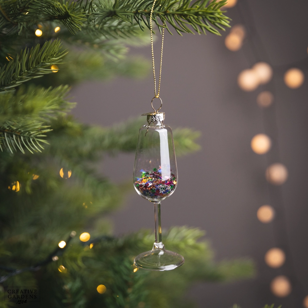 The Bottle Glass with Colourful Spangles Inside brings a hint of festive detail and works best alongside classic holiday colours or minimalist themes, enhancing without distraction.