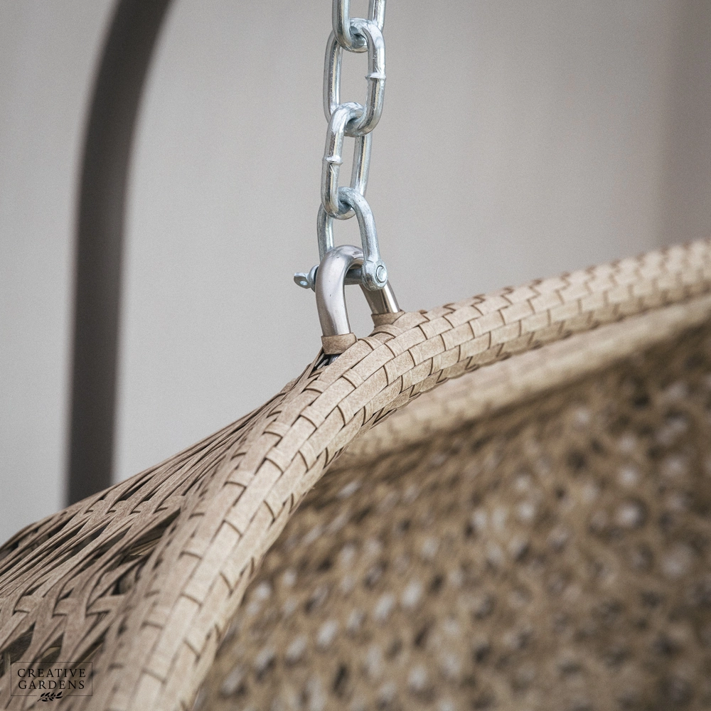- Crafted from lightweight, all-weather, outdoor rattan in a soothing Sandstone shade