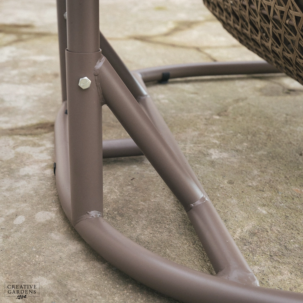 Please note: Whilst the steel poles are powder coated to enhance protection against exposure to the elements, there is a risk that some rusting may occur over time, in particular when paintwork surfaces become scratched. Caution is advised when moving cocoons and we recommend that they are lifted rather than dragged. We also advise a furniture cover when the product is not in use.