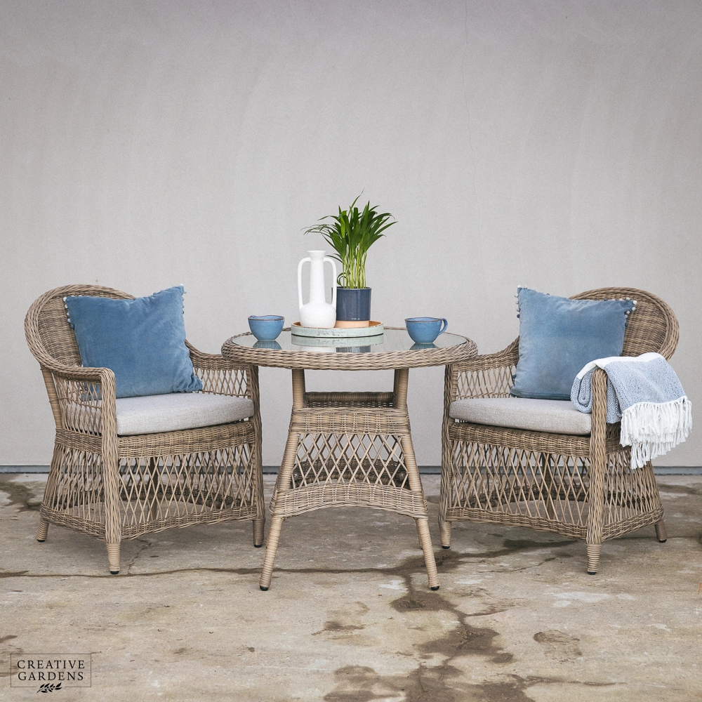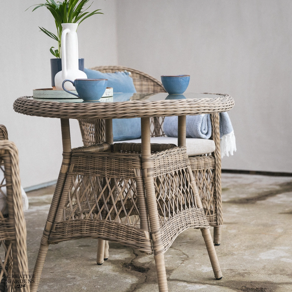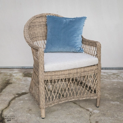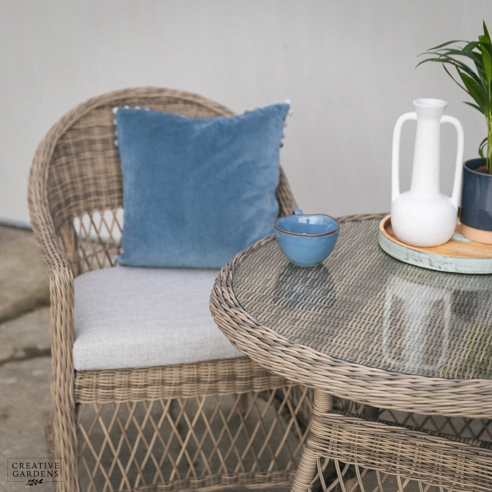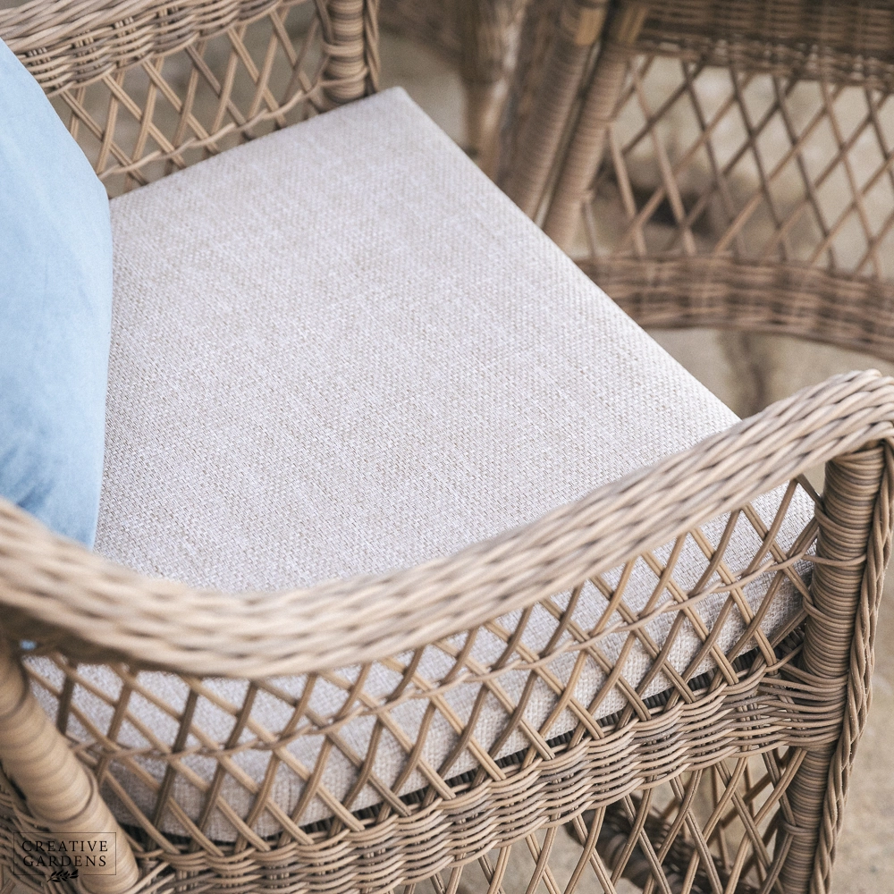 With its elegant open weave design and warm, neutral tones, the RHS Rosemoor collection from Bramblecrest brings timeless country style to any outdoor space. The rounded backs and deep-filled cushions ensure that comfort is prioritized, whether you're dining, lounging, or reclining in the garden.