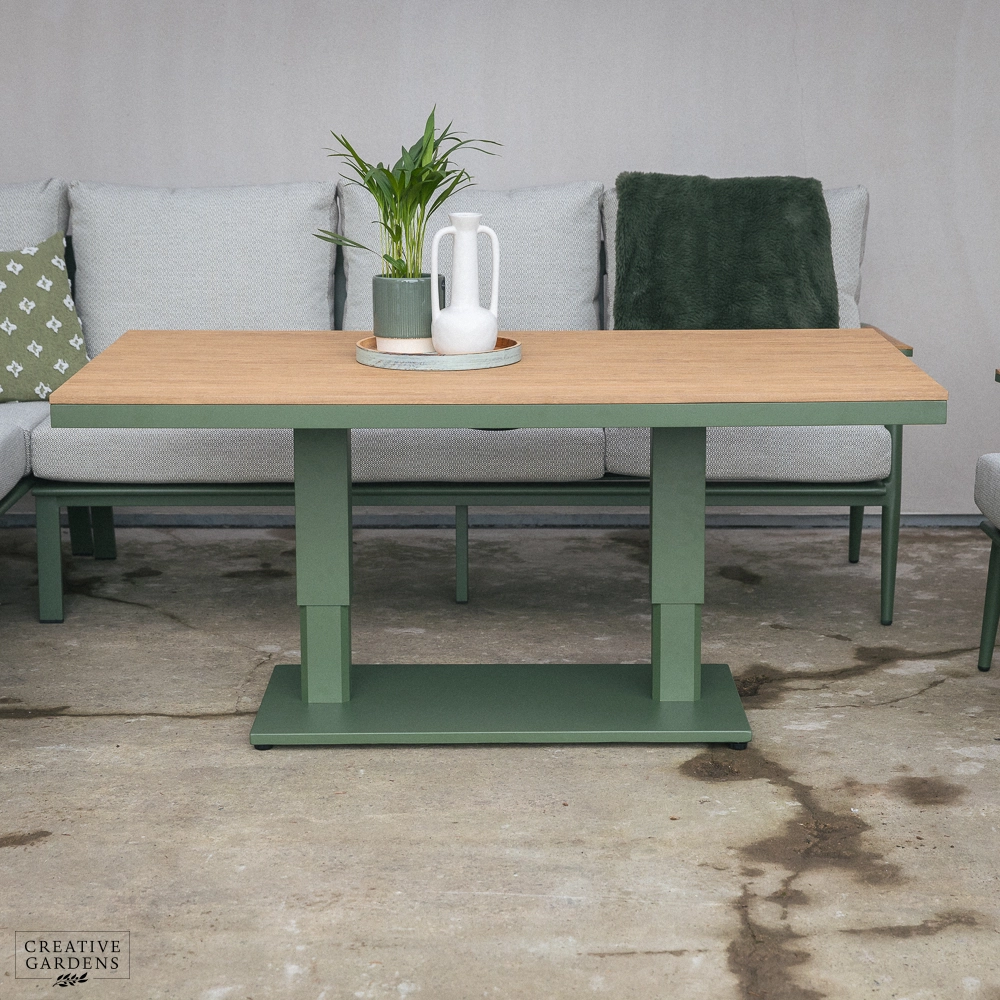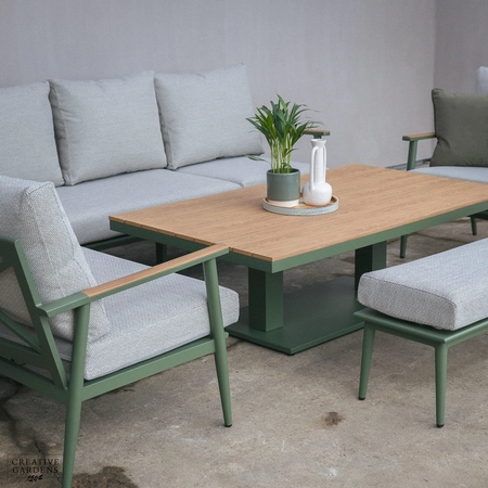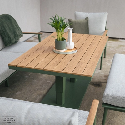 The Bramblecrest Wisley Sofa Set with Adjustable Table combines comfort, style, and functionality for a perfect outdoor lounging experience. This set includes a generously cushioned sofa and a height-adjustable table, allowing you to easily switch between dining and relaxing modes. The rust-free aluminium frame ensures long-lasting durability, while the season-proof cushions provide added comfort and resilience against the elements. With its elegant design and versatile features, the Wisley Sofa Set is ideal for creating a stylish, functional outdoor space that can be enjoyed year-round.