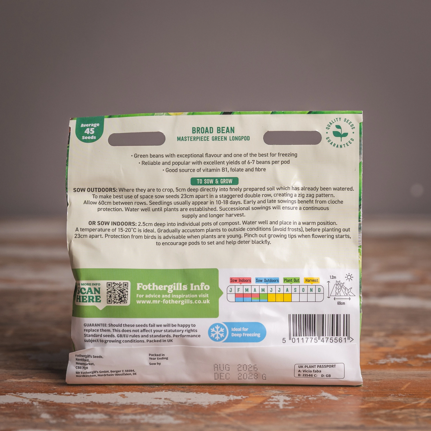 Are you looking for the product "Broad Bean Masterpiece Green Longpod"? We offer Fothergills Seeds products in our garden centers in Donaghadee, Bushmills, Galgorm and Logwood. You can also order the product "Broad Bean Masterpiece Green Longpod" online for £ 3.49 or check the products in Seeds & Bulbs. We look forward to seeing you soon!