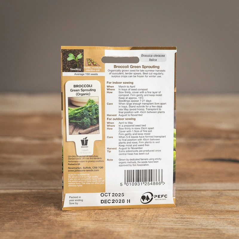 Are you looking for the product "Broccoli Green Sprouting Organic"? We offer Johnsons Seeds products in our garden centers in Donaghadee, Bushmills, Galgorm and Logwood. You can also order the product "Broccoli Green Sprouting Organic" online for £ 3.49 or check the products in Seeds & Bulbs. We look forward to seeing you soon!