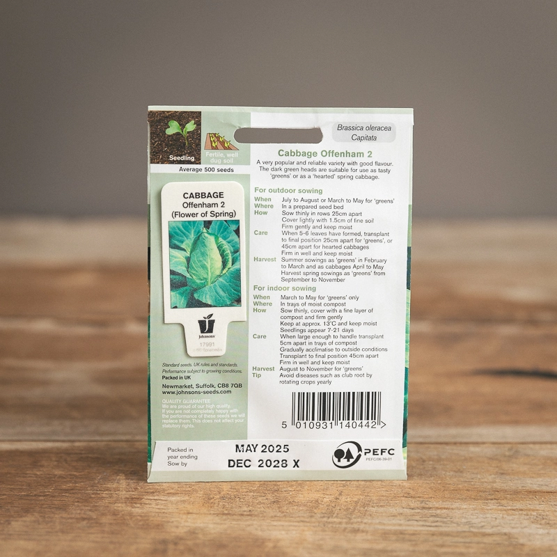 Are you looking for the product "Cabbage Offenham 2 (Flower Of Spring)"? We offer Johnsons Seeds products in our garden centers in Donaghadee, Bushmills, Galgorm and Logwood. You can also order the product "Cabbage Offenham 2 (Flower Of Spring)" online for £ 2.49 or check the products in Seeds & Bulbs. We look forward to seeing you soon!