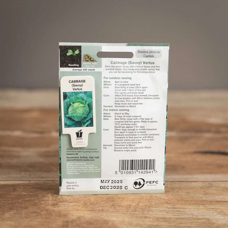 Are you looking for the product "Cabbage (Savoy) Vertus"? We offer Johnsons Seeds products in our garden centers in Donaghadee, Bushmills, Galgorm and Logwood. You can also order the product "Cabbage (Savoy) Vertus" online for £ 2.49 or check the products in Seeds & Bulbs. We look forward to seeing you soon!