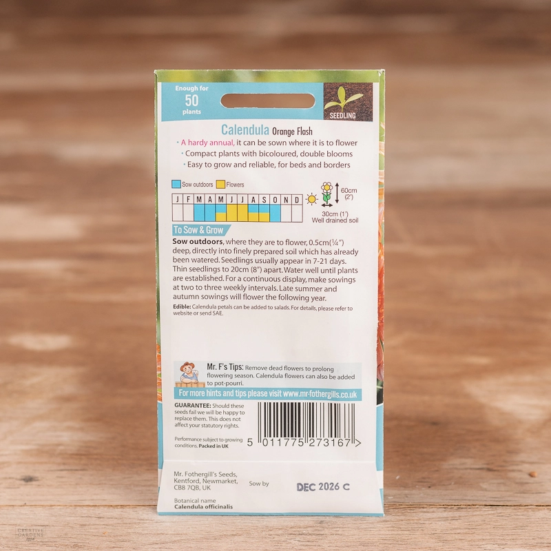 Are you looking for the product "Calendula Orange Flash"? We offer Fothergills Seeds products in our garden centers in Donaghadee, Bushmills, Galgorm and Logwood. You can also order the product "Calendula Orange Flash" online for £ 3.19 or check the products in Seeds & Bulbs. We look forward to seeing you soon!