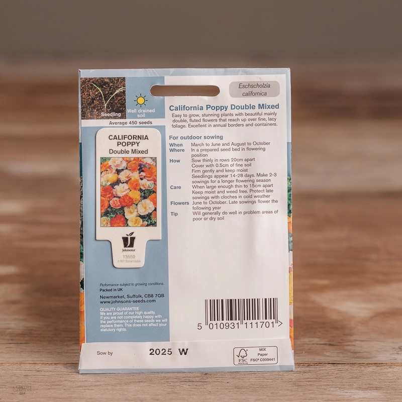 Are you looking for the product "California Poppy Double Mix"? We offer Johnsons Seeds products in our garden centers in Donaghadee, Bushmills, Galgorm and Logwood. You can also order the product "California Poppy Double Mix" online for £ 3.19 or check the products in Seeds & Bulbs. We look forward to seeing you soon!