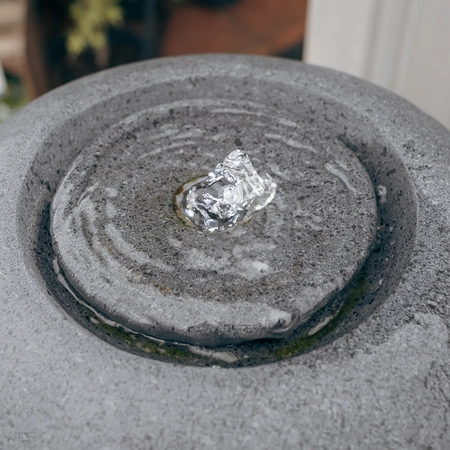The Camilla Fountain is a contemporary, glass-reinforced Concrete fountain with an integrated LED light. This mains powered water feature includes it own reservoir and is suitable for outdoor use