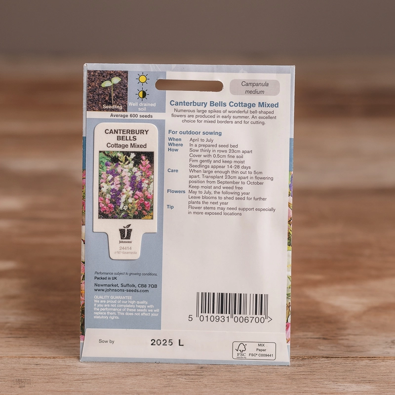 Are you looking for the product "Canterbury Bells Cottage Mix"? We offer Johnsons Seeds products in our garden centers in Donaghadee, Bushmills, Galgorm and Logwood. You can also order the product "Canterbury Bells Cottage Mix" online for £ 3.19 or check the products in Seeds & Bulbs. We look forward to seeing you soon!