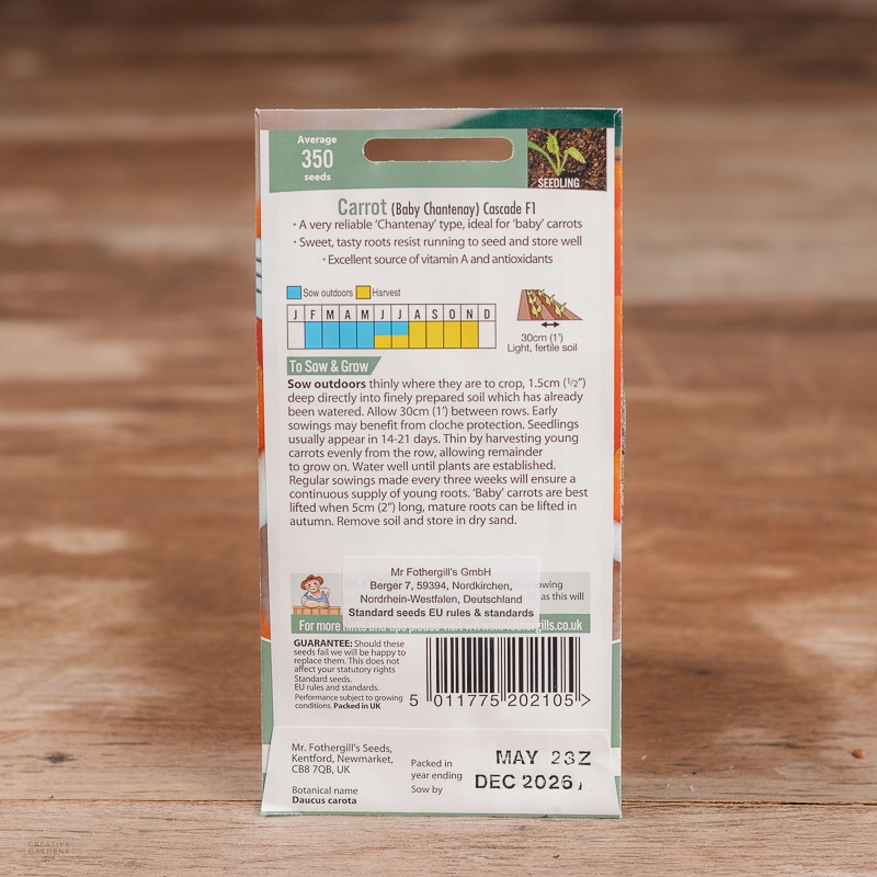 Are you looking for the product "Carrot (Baby Chantenay) Cascade F1"? We offer Fothergills Seeds products in our garden centers in Donaghadee, Bushmills, Galgorm and Logwood. You can also order the product "Carrot (Baby Chantenay) Cascade F1" online for £ 3.99 or check the products in Seeds & Bulbs. We look forward to seeing you soon!