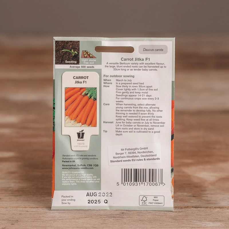 Are you looking for the product "Carrot Jitka F1"? We offer Johnsons Seeds products in our garden centers in Donaghadee, Bushmills, Galgorm and Logwood. You can also order the product "Carrot Jitka F1" online for £ 3.49 or check the products in Seeds & Bulbs. We look forward to seeing you soon!