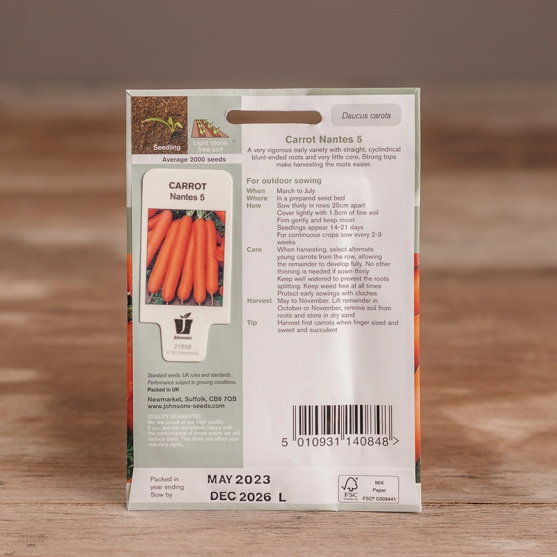 Are you looking for the product "Carrot Nantes 5"? We offer Johnsons Seeds products in our garden centers in Donaghadee, Bushmills, Galgorm and Logwood. You can also order the product "Carrot Nantes 5" online for £ 2.49 or check the products in Seeds & Bulbs. We look forward to seeing you soon!