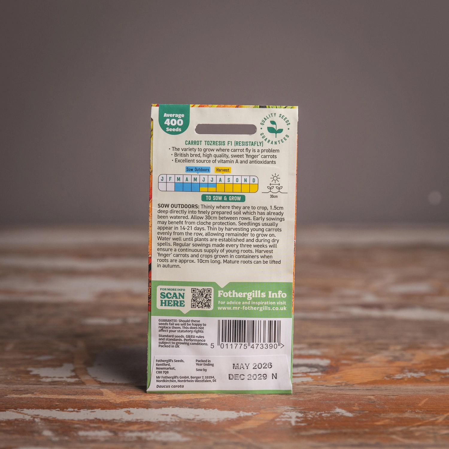 Are you looking for the product "Carrot Resistafly Tozresis F1"? We offer Fothergills Seeds products in our garden centers in Donaghadee, Bushmills, Galgorm and Logwood. You can also order the product "Carrot Resistafly Tozresis F1" online for £ 3.99 or check the products in Seeds & Bulbs. We look forward to seeing you soon!