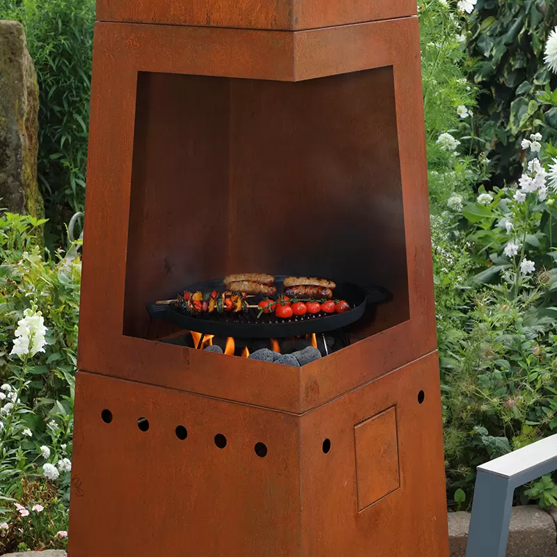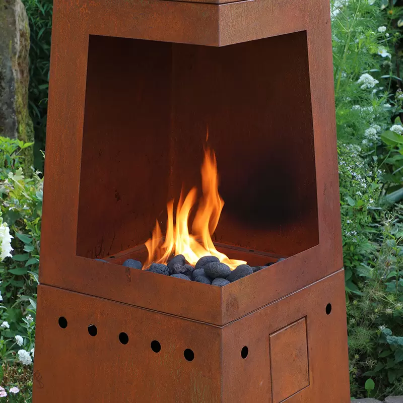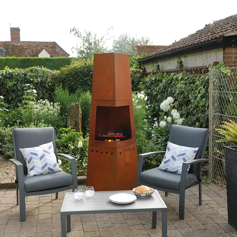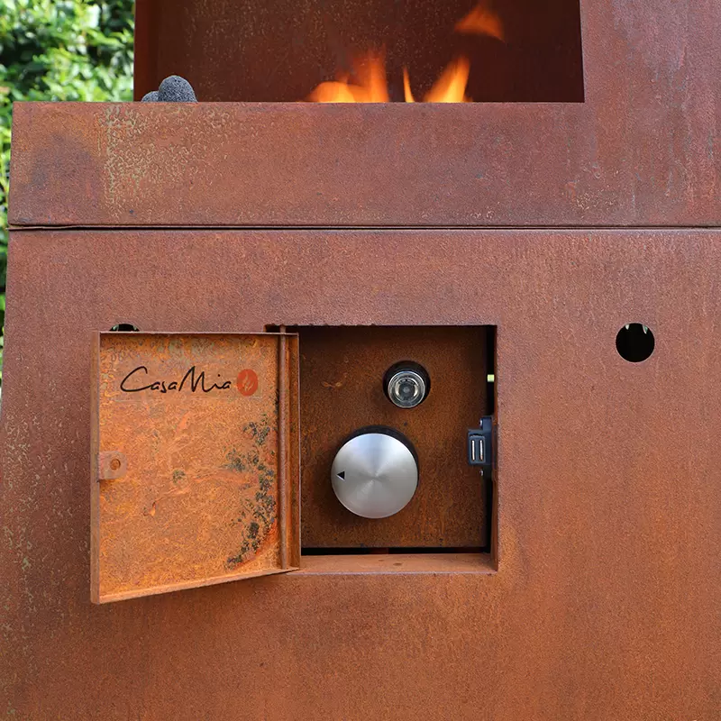 The Casa Mia Tempo Gas Chiminea is constructed from Corten Steel, designed to weather over time without losing its structural integrity. There is hidden storage in the base of the chiminea for a 9kg gas bottle and it also includes the hose and regulator so you are ready to fire up straight out of the box. This chiminea also includes a griddle and tripod that can be placed over the flame so you can cook your snacks while you relax by the fire.