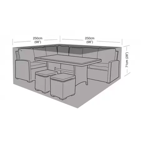 High Quality, super Tough furniture cover with full UV and weather protection with waterproof welded seams. All round draw string with chord locks allows you to secure the cover to your furniture. This cover comes with a massive 7 year guarantee.