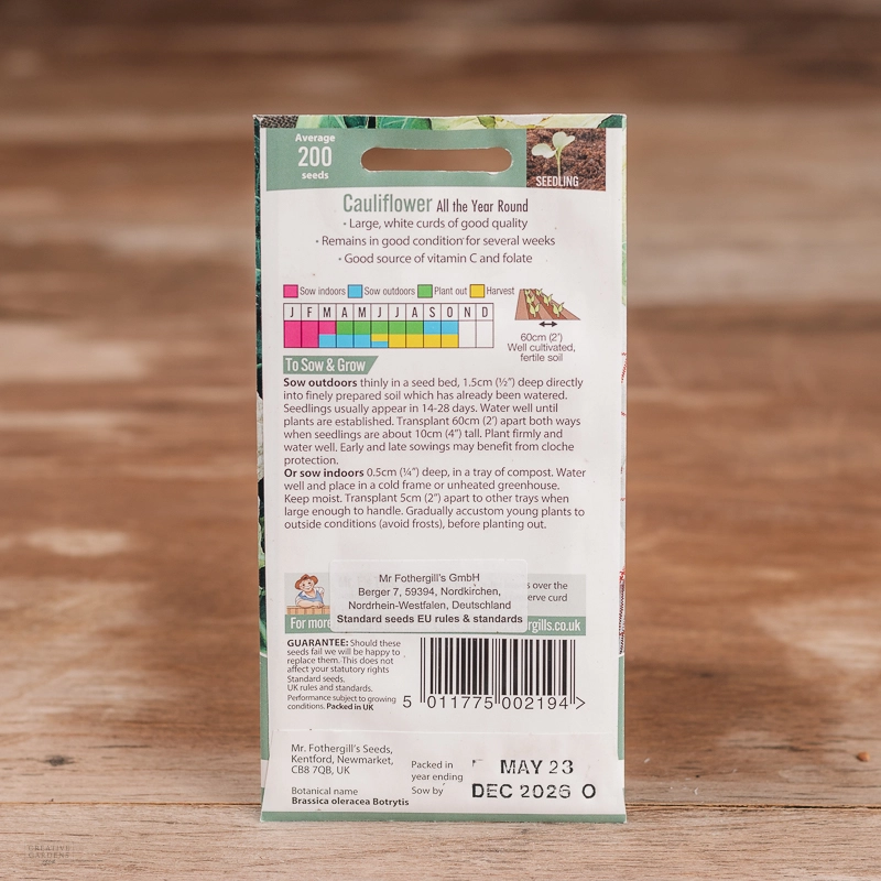 Are you looking for the product "Cauliflower All The Year Round"? We offer Fothergills Seeds products in our garden centers in Donaghadee, Bushmills, Galgorm and Logwood. You can also order the product "Cauliflower All The Year Round" online for £ 1.99 or check the products in Seeds & Bulbs. We look forward to seeing you soon!