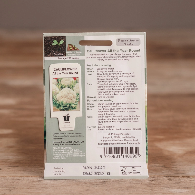 Are you looking for the product "Cauliflower All The Year Round"? We offer Johnsons Seeds products in our garden centers in Donaghadee, Bushmills, Galgorm and Logwood. You can also order the product "Cauliflower All The Year Round" online for £ 1.99 or check the products in Seeds & Bulbs. We look forward to seeing you soon!