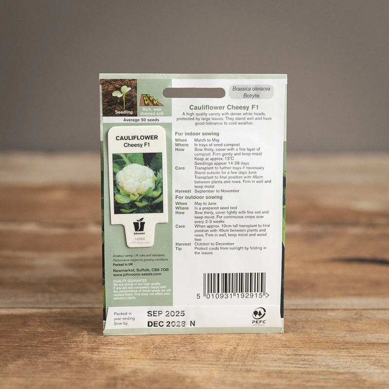 Are you looking for the product "Cauliflower Cheesy F1"? We offer Johnsons Seeds products in our garden centers in Donaghadee, Bushmills, Galgorm and Logwood. You can also order the product "Cauliflower Cheesy F1" online for £ 3.19 or check the products in Seeds & Bulbs. We look forward to seeing you soon!