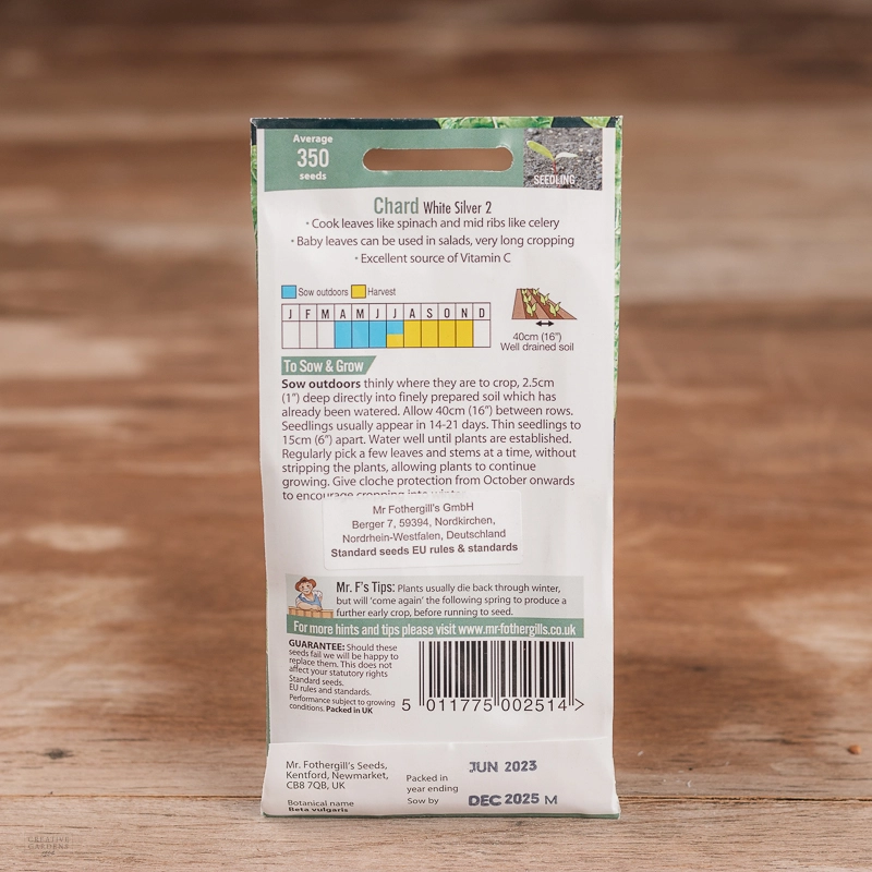 Are you looking for the product "Chard White Silver 2"? We offer Fothergills Seeds products in our garden centers in Donaghadee, Bushmills, Galgorm and Logwood. You can also order the product "Chard White Silver 2" online for £ 2.49 or check the products in Seeds & Bulbs. We look forward to seeing you soon!