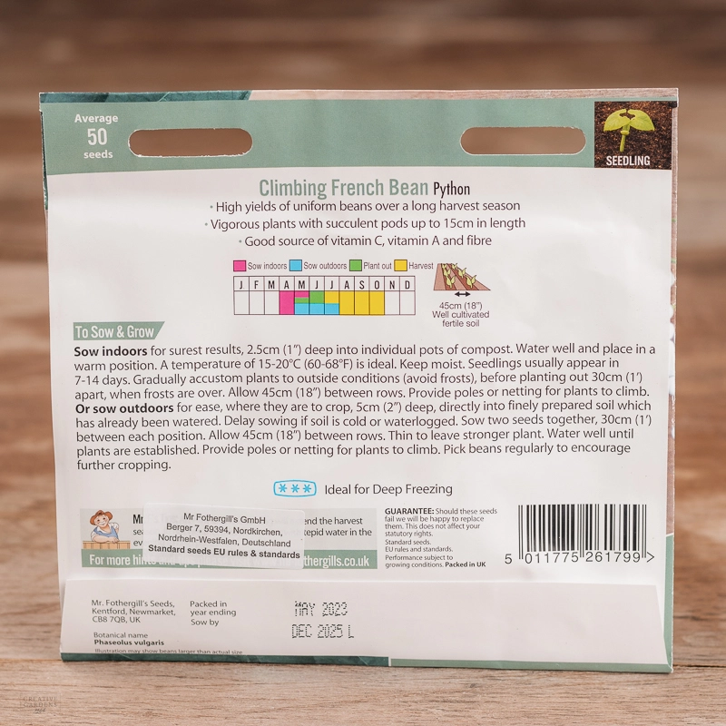 Are you looking for the product "Climbing French Bean Python"? We offer Fothergills Seeds products in our garden centers in Donaghadee, Bushmills, Galgorm and Logwood. You can also order the product "Climbing French Bean Python" online for £ 4.49 or check the products in Seeds & Bulbs. We look forward to seeing you soon!