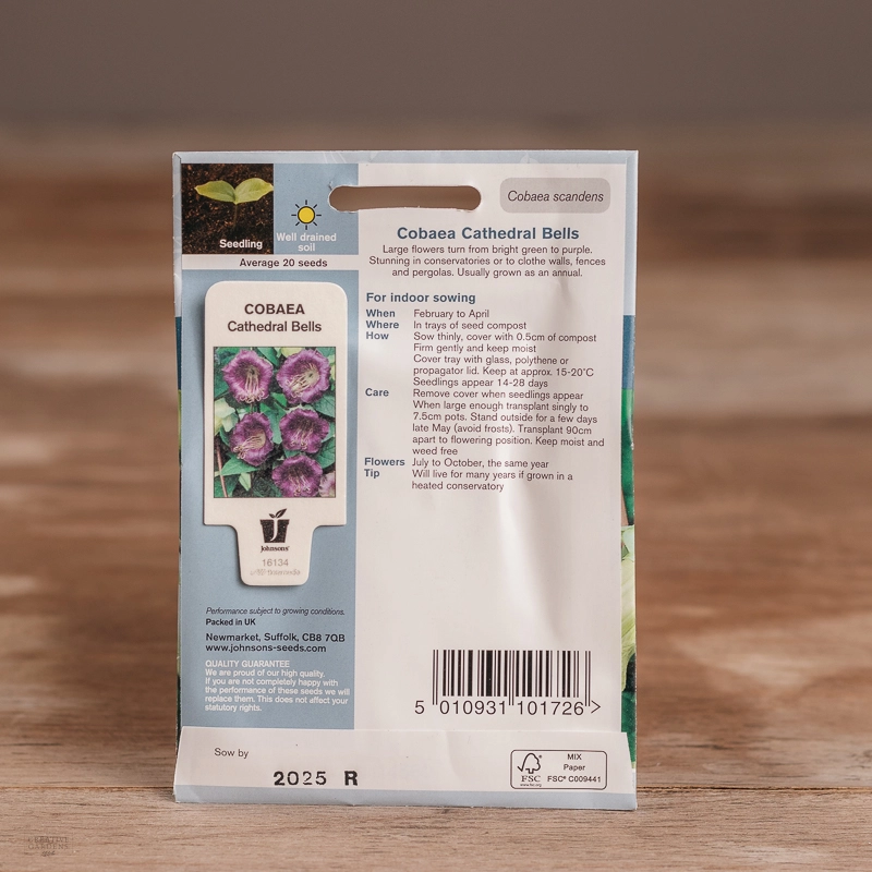 Are you looking for the product "Cobaea Cathedral Bells"? We offer Johnsons Seeds products in our garden centers in Donaghadee, Bushmills, Galgorm and Logwood. You can also order the product "Cobaea Cathedral Bells" online for £ 4.49 or check the products in Seeds & Bulbs. We look forward to seeing you soon!