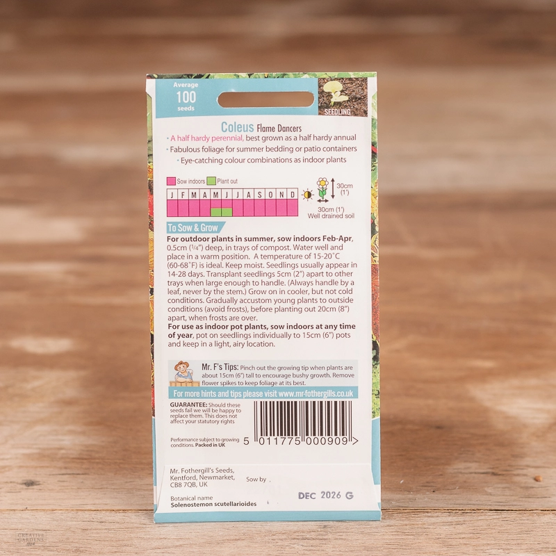 Are you looking for the product "Coleus Flame Dancers"? We offer Fothergills Seeds products in our garden centers in Donaghadee, Bushmills, Galgorm and Logwood. You can also order the product "Coleus Flame Dancers" online for £ 2.99 or check the products in Seeds & Bulbs. We look forward to seeing you soon!