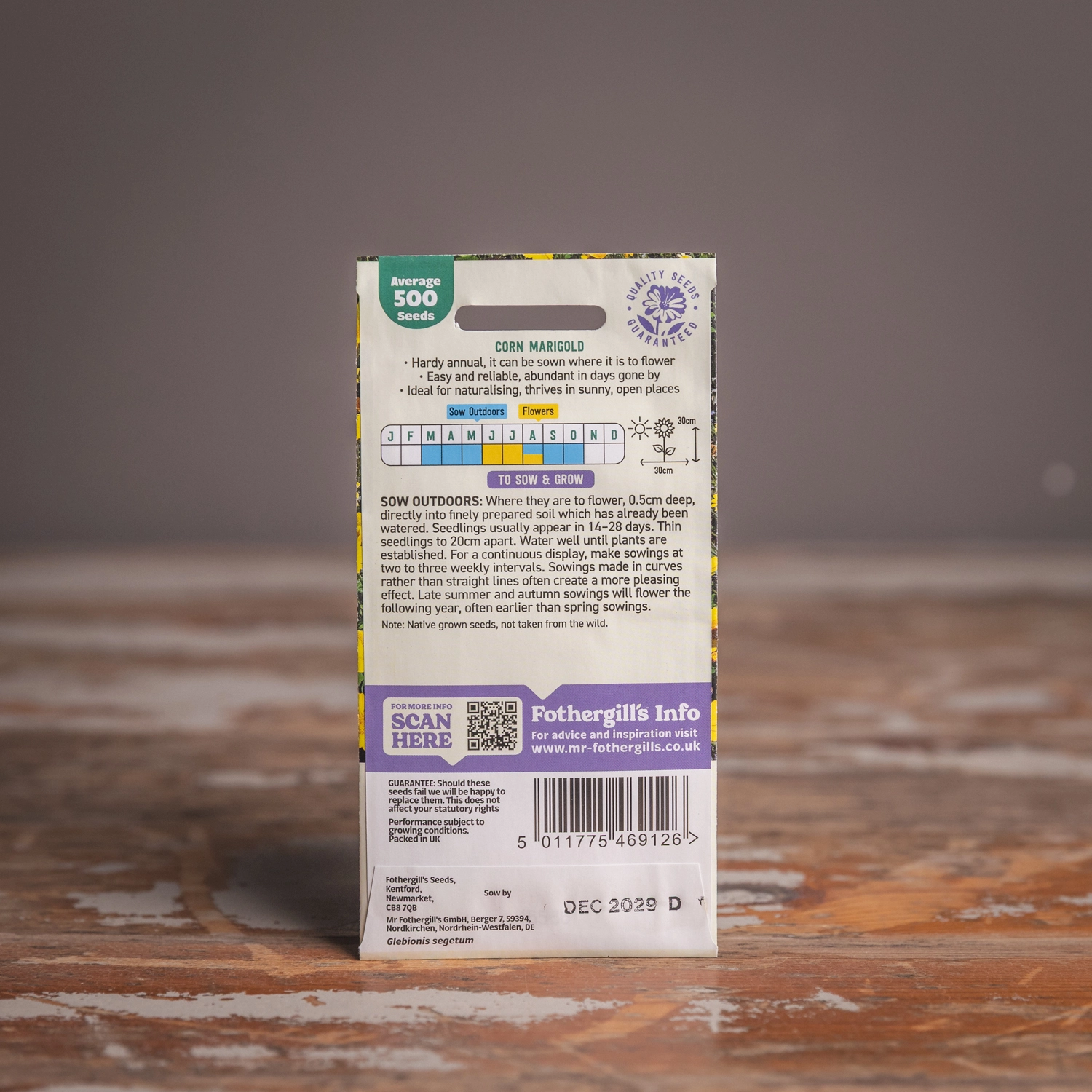 Are you looking for the product "Corn Marigold"? We offer Fothergills Seeds products in our garden centers in Donaghadee, Bushmills, Galgorm and Logwood. You can also order the product "Corn Marigold" online for £ 3.19 or check the products in Seeds & Bulbs. We look forward to seeing you soon!