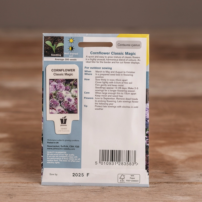 Are you looking for the product "Cornflower Classic Magic"? We offer Johnsons Seeds products in our garden centers in Donaghadee, Bushmills, Galgorm and Logwood. You can also order the product "Cornflower Classic Magic" online for £ 3.19 or check the products in Seeds & Bulbs. We look forward to seeing you soon!