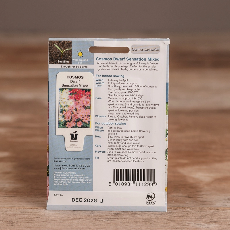 Are you looking for the product "Cosmos Dwarf Sensation Mix"? We offer Johnsons Seeds products in our garden centers in Donaghadee, Bushmills, Galgorm and Logwood. You can also order the product "Cosmos Dwarf Sensation Mix" online for £ 3.49 or check the products in Seeds & Bulbs. We look forward to seeing you soon!
