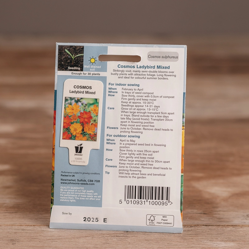 Are you looking for the product "Cosmos Ladybird Mix"? We offer Johnsons Seeds products in our garden centers in Donaghadee, Bushmills, Galgorm and Logwood. You can also order the product "Cosmos Ladybird Mix" online for £ 3.49 or check the products in Seeds & Bulbs. We look forward to seeing you soon!