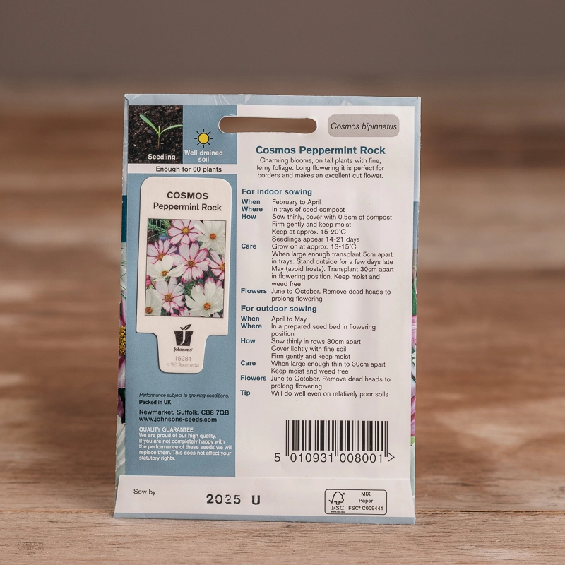 Are you looking for the product "Cosmos Peppermint Rock"? We offer Johnsons Seeds products in our garden centers in Donaghadee, Bushmills, Galgorm and Logwood. You can also order the product "Cosmos Peppermint Rock" online for £ 3.49 or check the products in Seeds & Bulbs. We look forward to seeing you soon!