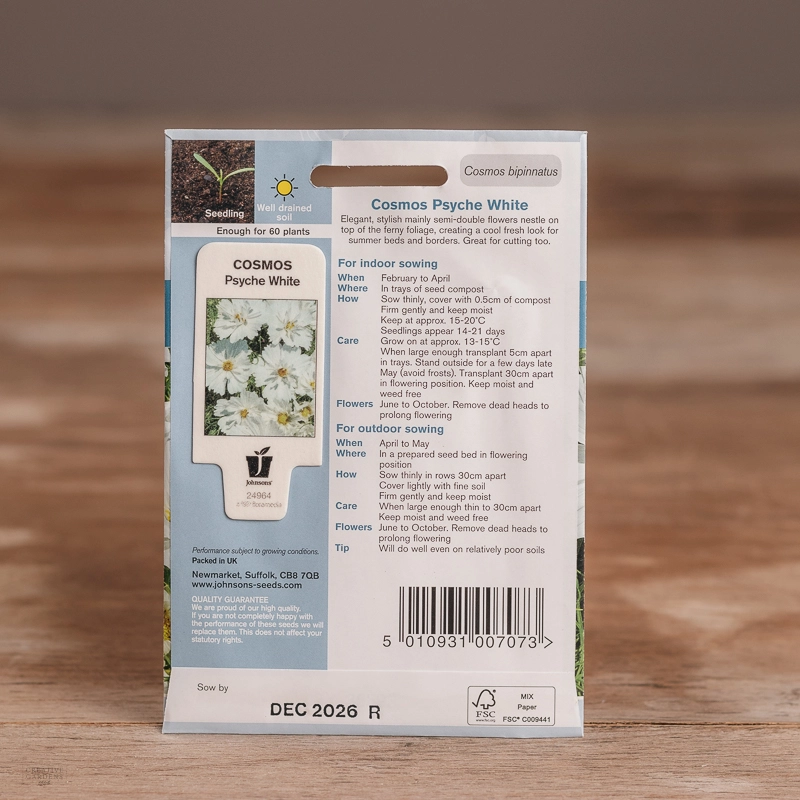 Are you looking for the product "Cosmos Psyche White"? We offer Johnsons Seeds products in our garden centers in Donaghadee, Bushmills, Galgorm and Logwood. You can also order the product "Cosmos Psyche White" online for £ 3.49 or check the products in Seeds & Bulbs. We look forward to seeing you soon!