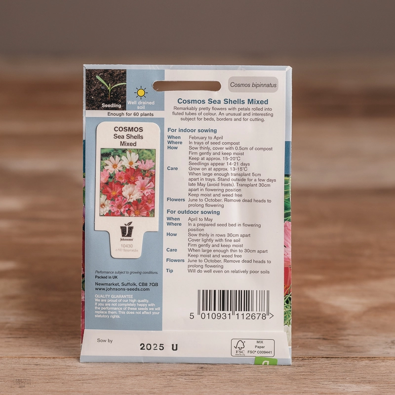 Are you looking for the product "Cosmos Sea Shells Mix"? We offer Johnsons Seeds products in our garden centers in Donaghadee, Bushmills, Galgorm and Logwood. You can also order the product "Cosmos Sea Shells Mix" online for £ 3.19 or check the products in Seeds & Bulbs. We look forward to seeing you soon!