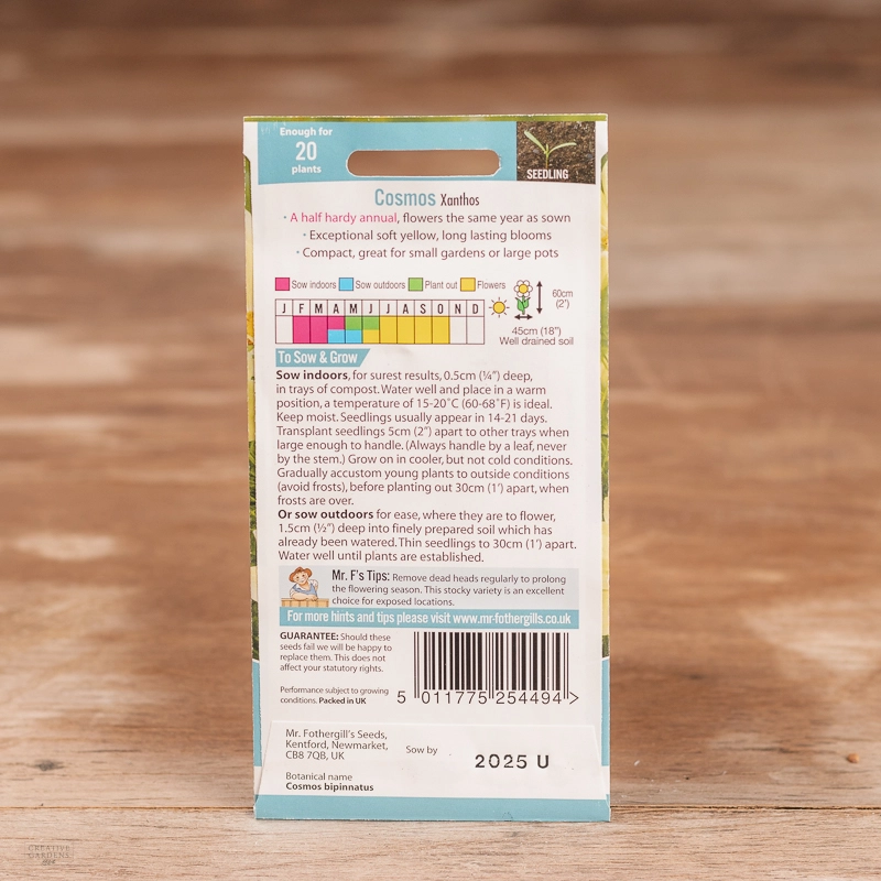 Are you looking for the product "Cosmos Xanthos"? We offer Fothergills Seeds products in our garden centers in Donaghadee, Bushmills, Galgorm and Logwood. You can also order the product "Cosmos Xanthos" online for £ 3.19 or check the products in Seeds & Bulbs. We look forward to seeing you soon!