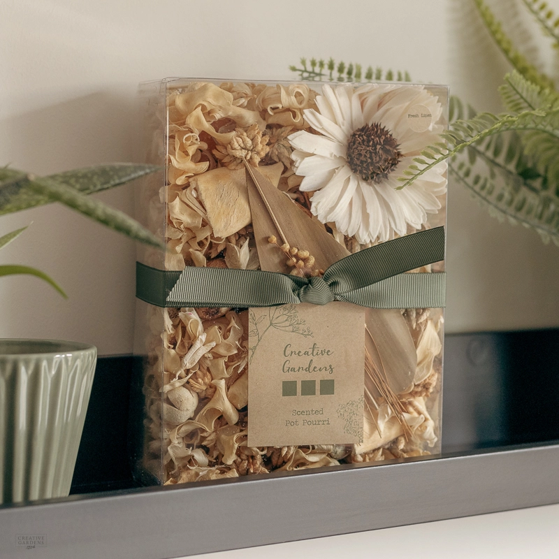 We would love to know what you think! Write a review about the product “Creative Gardens Medium Pot Pourri Fresh Linen”
